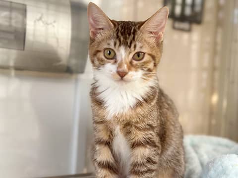 姉妹のしっぽが短い方です。母猫に置いて行かれてしまったようで、赤ちゃんの頃に保護されました。