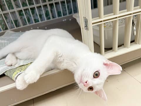 甘えん坊で、撫でて欲しくて催促してきます。 TNR後にリリースされる予定だった子猫でした。とても人慣れしていたため、お外での暮らしを心配したTNR活動者さんが連れてきてくれました。元気いっぱいです。