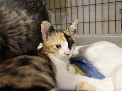 多頭飼育崩壊現場から来ました。風邪症状があり、治療中です。 甘えたいのか、兄弟で人間に向かってよく鳴いており、お喋りで可愛いです。