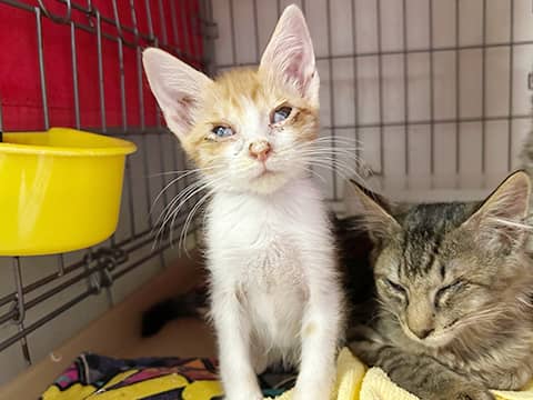 風邪症状がひどく、治療中です。 来た時から風邪症状が酷く、まだ目はしっかり開けれていないですが、だいぶよくなってきました。 ご飯もよく食べ、よく遊びます。