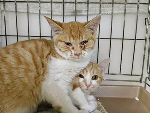 茶トラの兄弟です。風邪症状があり、治療中です。尾が短めで丸々とした子です。
