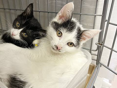 ちょびヒゲ模様の可愛いおちびさんです。 地域猫活動をしている方が保護してくれました。成猫の手術をしようとしたところ妊娠していることが判明し、出産〜離乳まで保護主さん宅でお世話してくださったそうです。 母猫と安全な場所で元気に育ち、離乳してからシェルターに移動することができました。