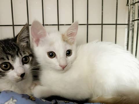 白が多めの柄です。お顔は白茶ですが、しっぽに少し黒い模様があるので三毛猫かもしれません。 地域猫活動をしている方が保護してくれました。成猫の手術をしようとしたところ妊娠していることが判明し、出産〜離乳まで保護主さん宅でお世話してくださったそうです。 母猫と安全な場所で元気に育ち、離乳してからシェルターに移動することができました。