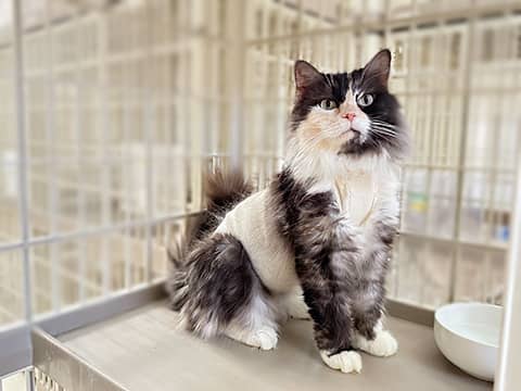 ふわふわの毛並みが綺麗な子です。口元の模様で「ムッ!」とした顔に見えちゃいますが、怒ってません。